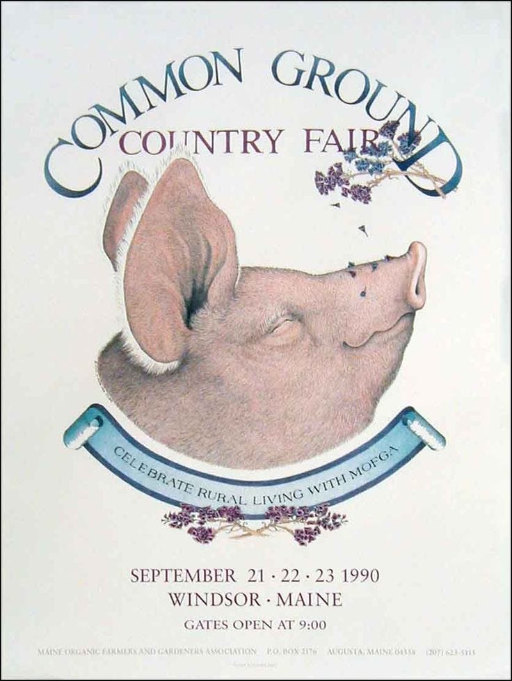That circuit also included the Common Ground Fair, which I vividly recall visiting in 1990 with my best friend and her family. If Cumberland was a bustling, stencil trend-driven marketplace, Common Ground felt like a utopian world. First held in 1977, it was a true “harvest celebration” that championed organic living and handcraft, a direct counterpoint to commercial fairs. It hummed with a different energy—not just of commerce, but of mission! We danced to bluegrass music, jumped from pen to pen to see the heritage-breed animals, and ate delicious, homemade food.