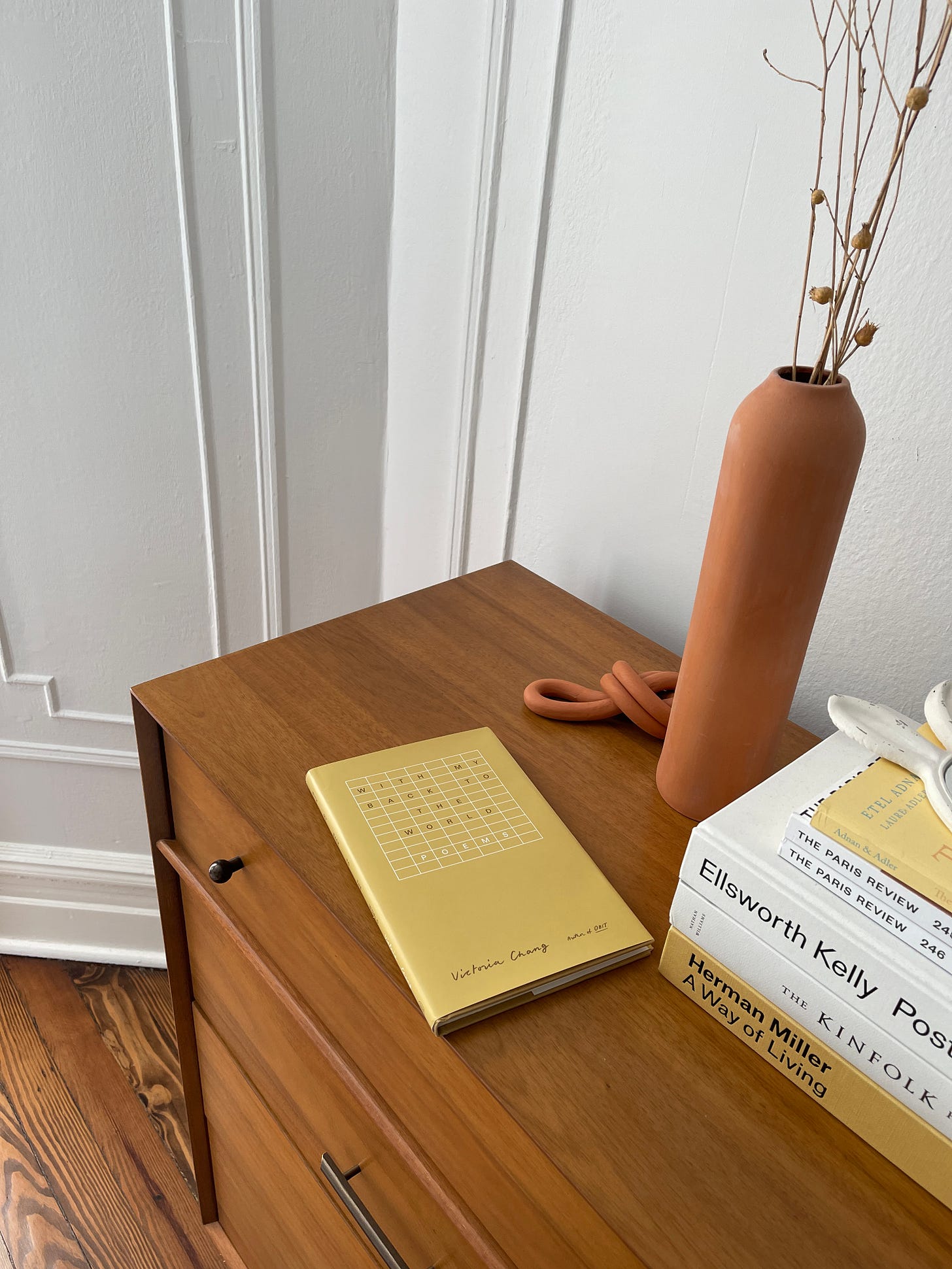 Next week, I’ll be publishing my podcast interview with Victoria Chang (whose creative nonfiction work, Dear Memory, was mentioned in this story). For the interview, I spoke with Chang about her recently published poetry collection, With My Back to the World. The collection is in conversation with the artist Agnes Martin’s work and explores themes like depression, grief, and self. It’s an incredibly brave and tender offering.