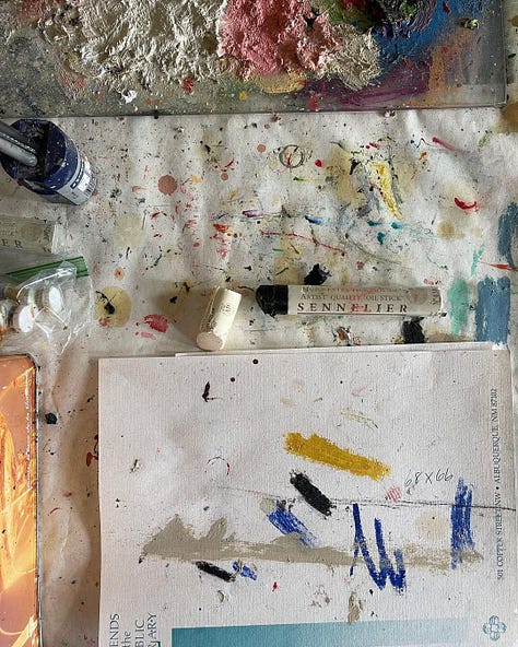 Sharon takes up a lot of room in my writing. You’ll meet her in Slowing. Maybe you’re already familiar with her incredible paintings from my Instagram posts or from other stories I’ve snuck her into over the years. She lives across the country but shows up everywhere these days: in her painting above our bed, a new book proposal, a recently unearthed email exchange we had when I was in high school. (She’s since cast off email and texting—which she refers to as “the machine”—and I don’t blame her.) She is one of the first people in my life who showed me art-making was viable, both personally and professionally. She is ecstatic about Slowing. Because of this, her letters have swept in like a storm this year. We’re both getting older, and she is trying to know me in a way that I’ve only just accepted within myself: as an artist.