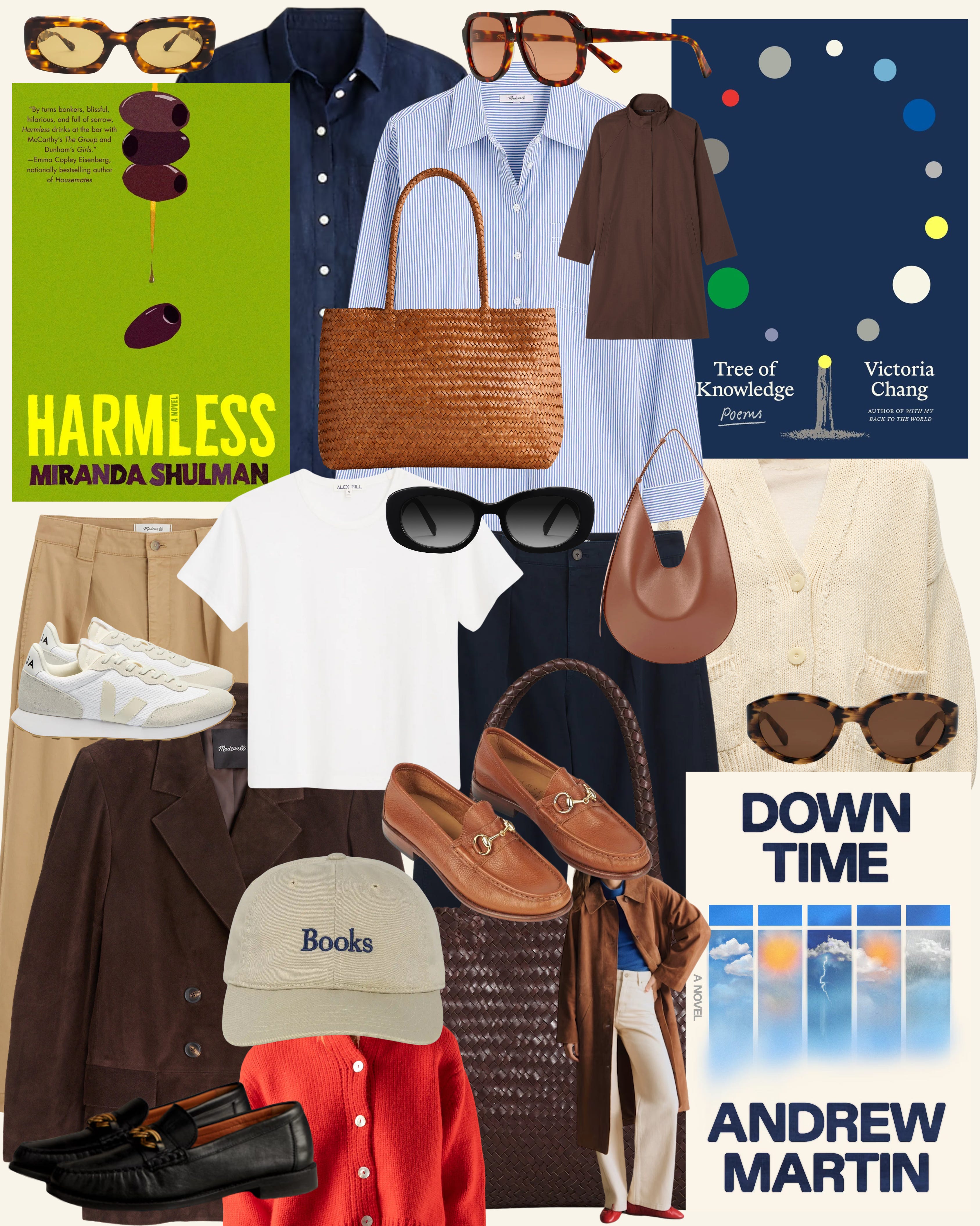 Aesther Ekme Classic Hobo Bag* - Alex Mill Garcon Tee - babaa Cardigan No 22 - Aperçu Alyssa Sunglasses in Vintage Tort - EILEEN FISHER Light Cotton Nylon Stand Collar Coat* - J.Crew Garçon Classic Shirt - KREWE Lucy Sunglasses - Madewell Chino Pant* - Madewell Double-Breasted Suede Blazer* - Madewell Easy Shirt* -Madewell Logan Aviator Sunglasses* - Madewell Signature Woven Tote* - Nikki Chasin Sheba Cardigan Sweater* - Pacific Books Cap - Sézane Clyde Coat* - Sézane Vicky Loafers - Veja Rio Bronco II Sneaker - Warby Parker Carmel Sunglasses*